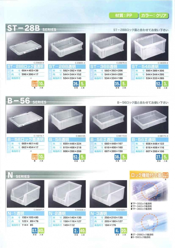 透明ボックスが必要なのに規格品がないというご要望にお応えして中身が見える「透明コンテナ」が岐阜プラスチック工業様より上市されました。